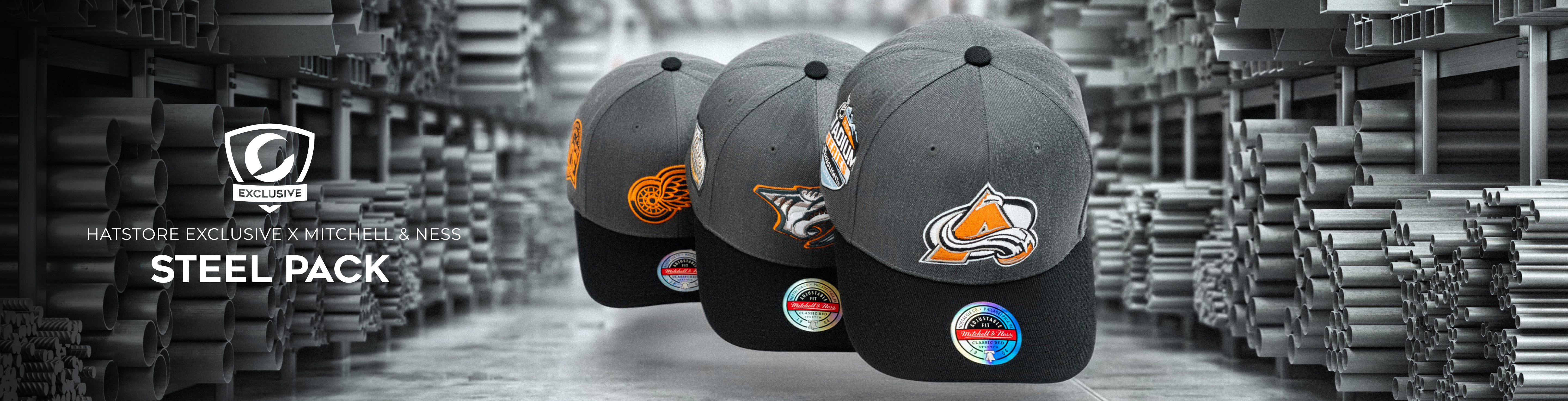 Hatstore Exclusive x Mitchell & Ness Steel Pack A limited lineup of NHL classics, reimagined in soft steel tones. Clean lines, subtle contrasts and a premium finish – this exclusive drop brings a fresh edge to timeless team pride. Only at Hatstore.
