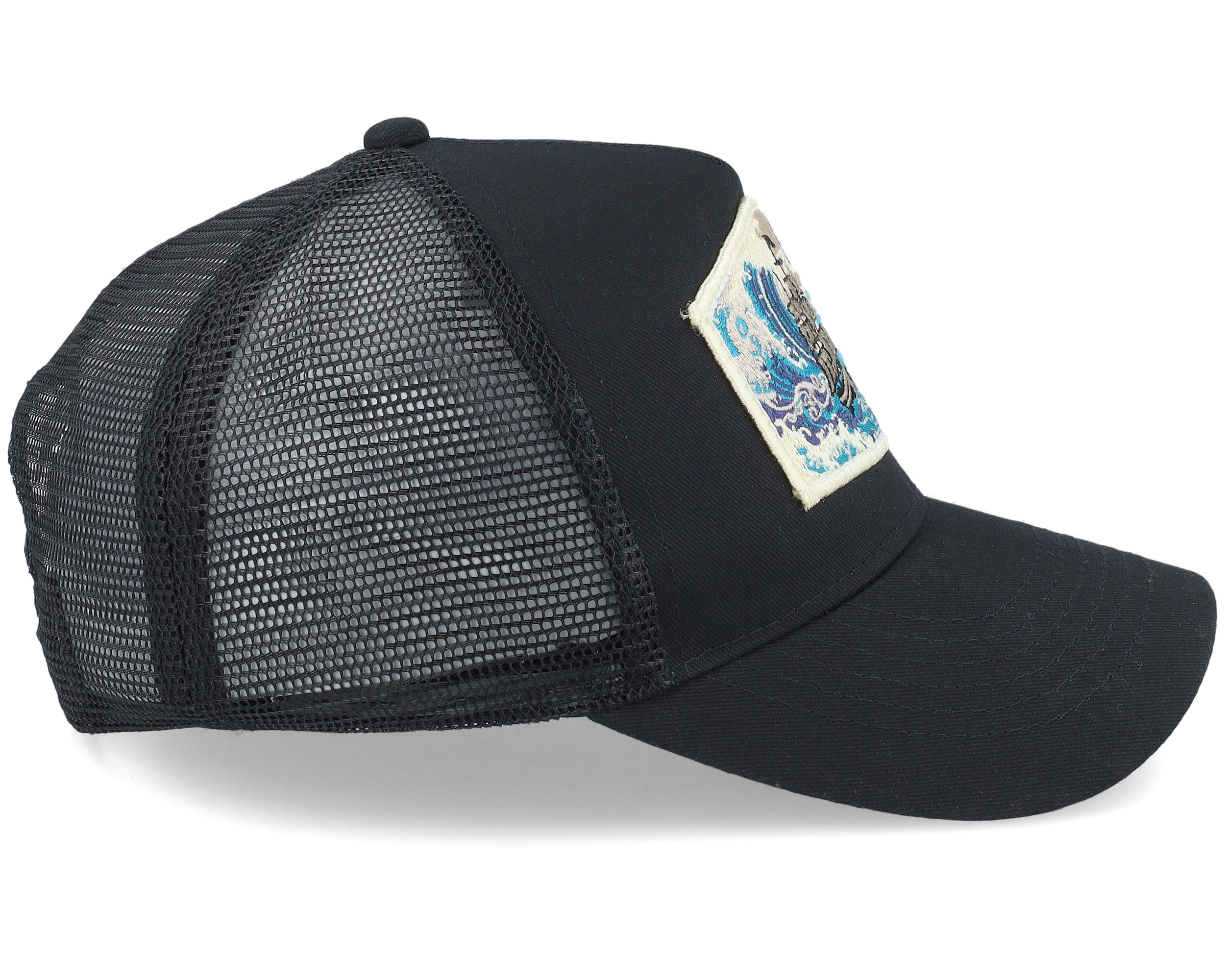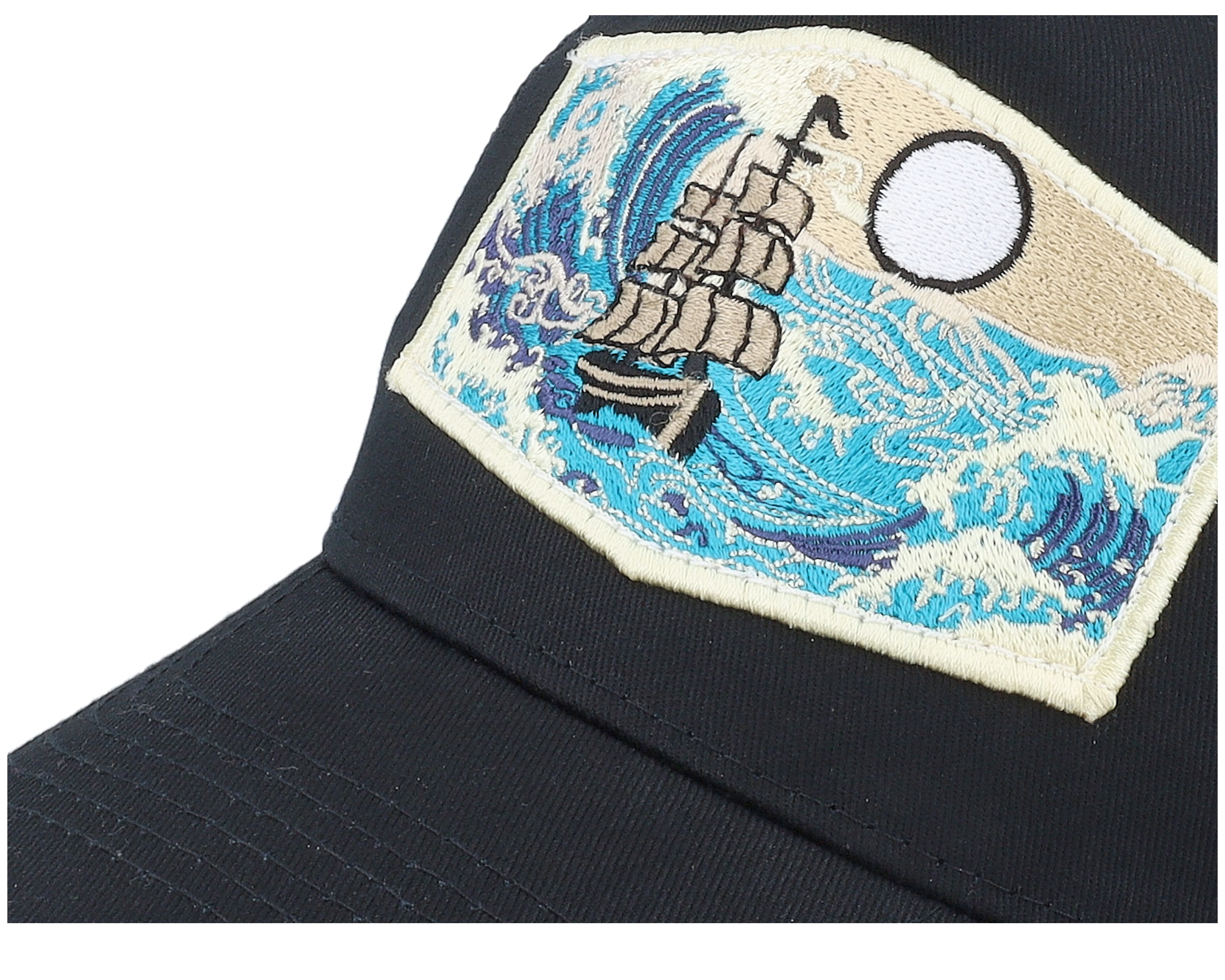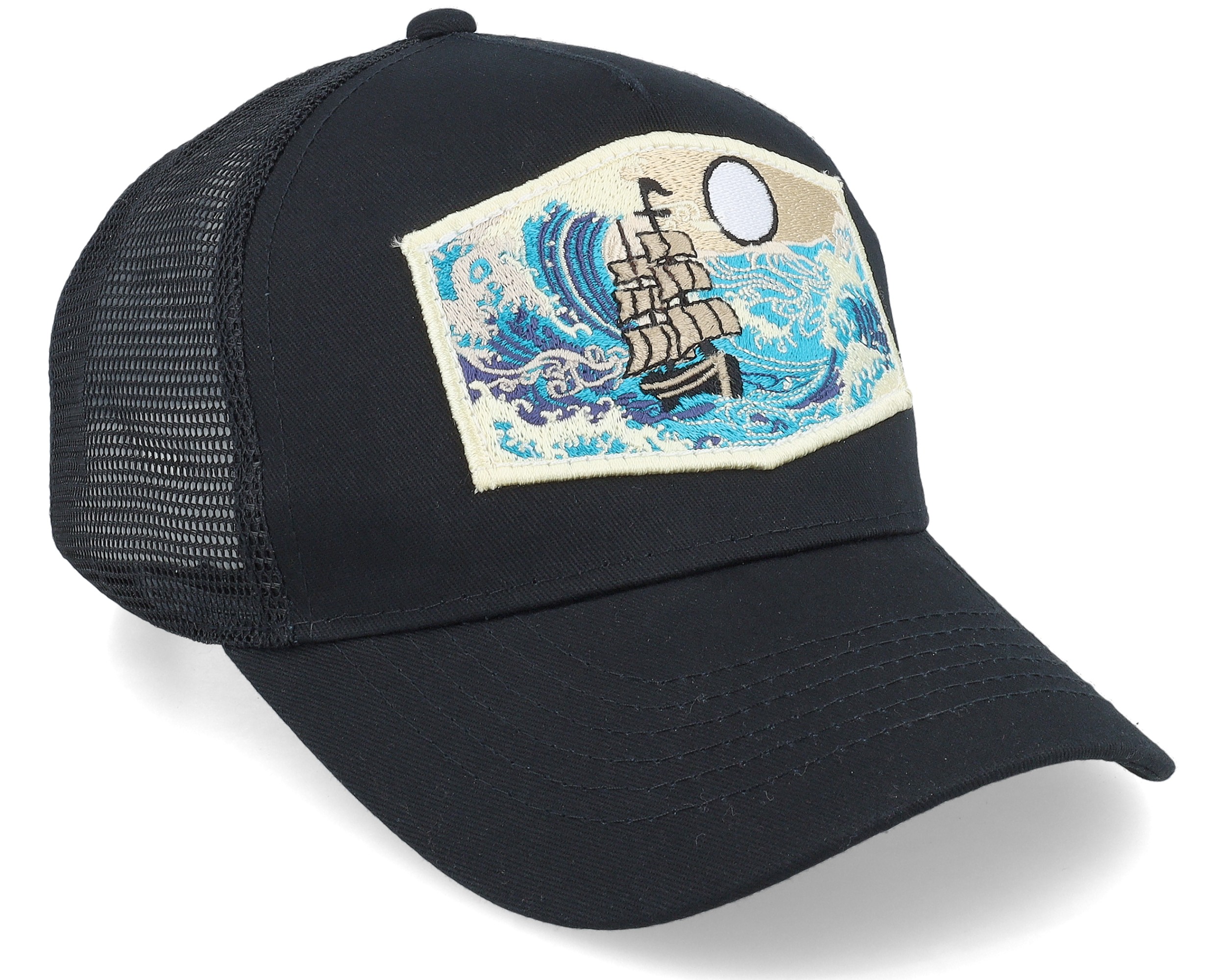 Kids Big Boat & Waves Patch Black A-frame Trucker
