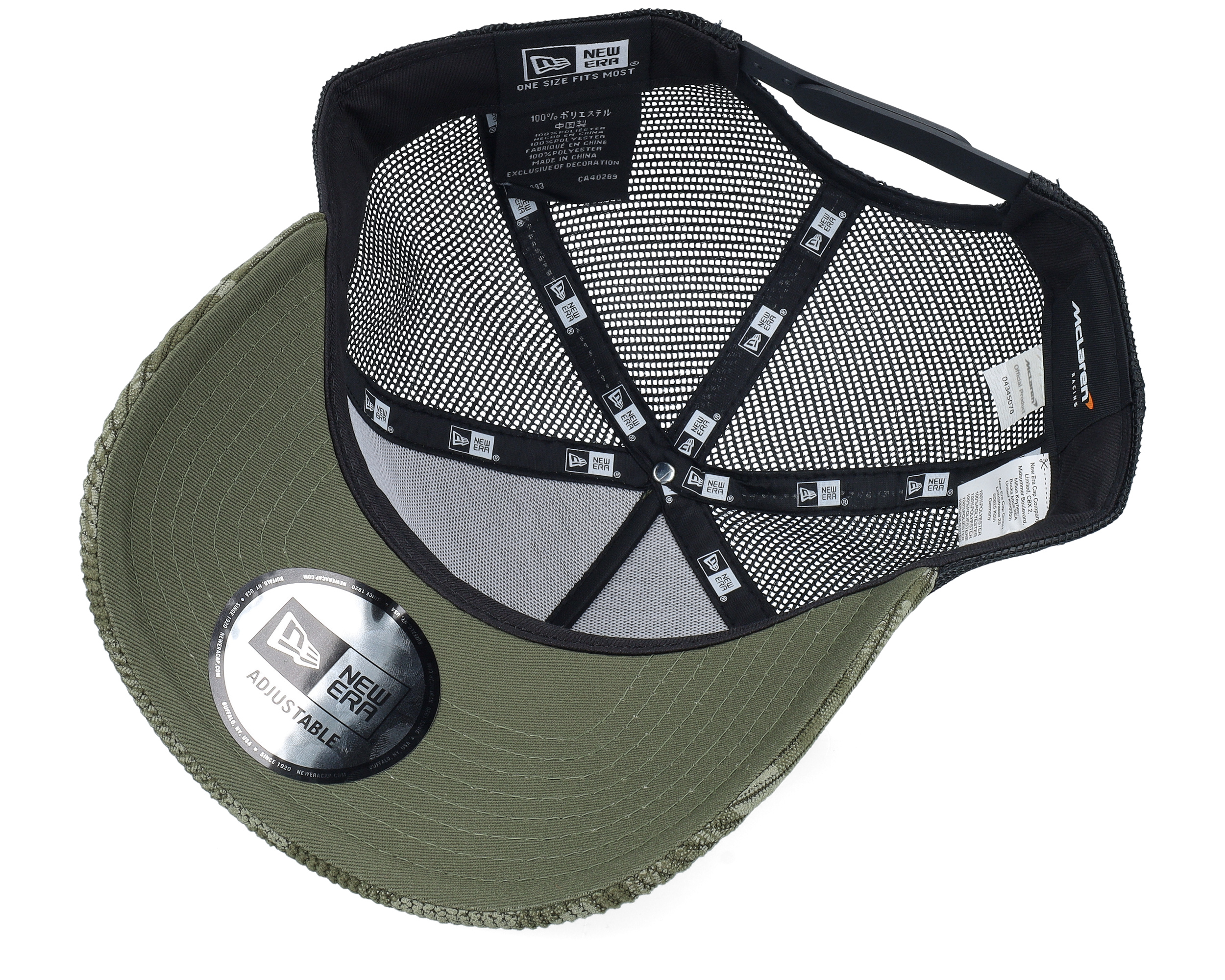 New Era McLaren F1 25 Cord Camo 9FORTY E-frame Olive/Black Trucker